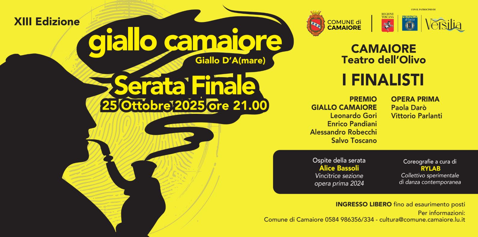 GialloCamaiore arriva all'ultimo atto: sabato 25 ottobre, alle ore 21.00, presso l'affascinante cornice del Teatro dell'Olivo, si terrà la serata finale della tredicesima edizione del premio cittadino di letteratura gialla.